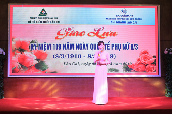 Sáng ngày 02/3/2019, tại Thành phố Lào Cai, Công ty TNHH một thành viên Xổ số kiến thiết tỉnh Lào Cai và Ngân hàng TMCP Sài Gòn Công thương Chi nhánh Lào Cai đã tổ chức giao lưu thể thao, văn nghệ chào mừng kỷ niệm 109 năm ngày Quốc tế Phụ nữ 8/3 (8/3/1910 - 8/3/2019).