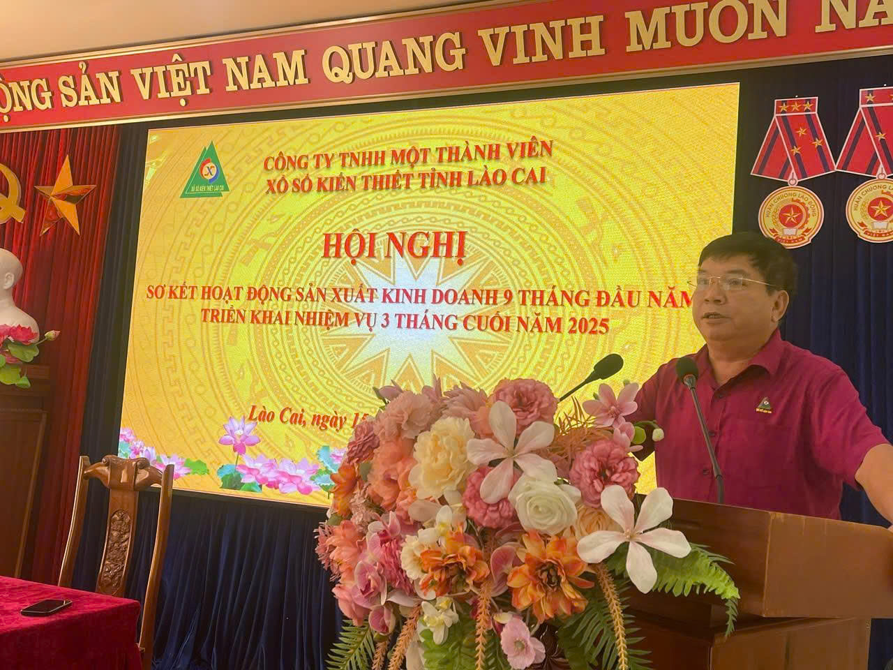 03:45:33 16/10/2025Sáng ngày 15 tháng 10 năm 2025, Công ty Xổ số kiến thiết Lào Cai tổ chức Hội nghị sơ kết công tác 9 tháng đầu năm 2025 và triển khai nhiệm vụ trọng tâm 3 tháng cuối năm.