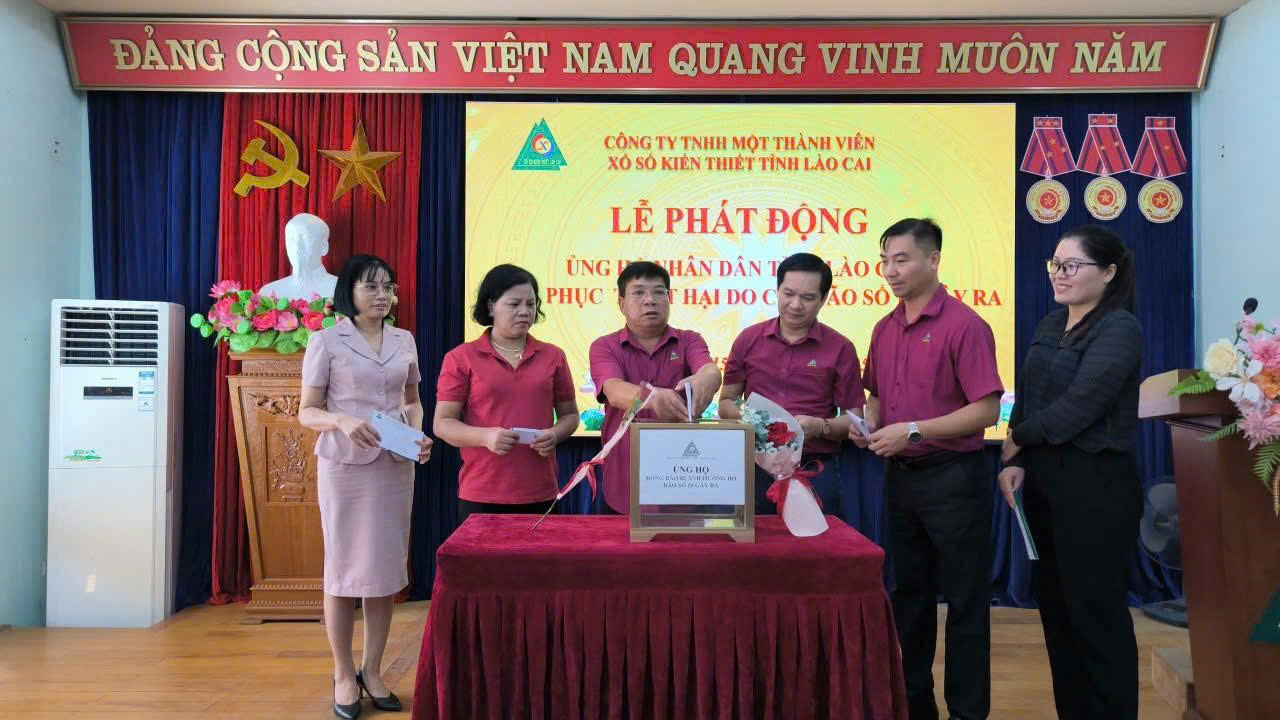 Sau phần thi đua khen thưởng, thực hiện tinh thần “Tương thân tương ái” và Lời kêu gọi của Uỷ ban MTTQ Việt Nam – Tỉnh Lào Cai, tại hội nghị Công ty Xổ số kiến thiết Lào Cai đã phát động phong trào quyên góp, ủng hộ Nhân dân tỉnh Lào Cai bị thiệt hại do cơn bão số 10. Mỗi cán bộ, công nhân viên thể hiện tấm lòng nhân ái, sẻ chia khó khăn cùng người dân bị thiệt hai do bão lũ, góp phần khắc phục hậu quả thiên tai, mỗi cán bộ đã ủng hộ 01 ngày lương, kết quả được 15,3 triệu đồng.