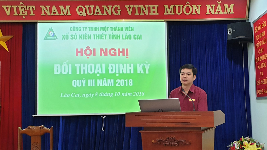 10:02:34 01/11/2018Ngày 8/10/2018 Công ty TNHH một thành viên xổ số kiến thiết tỉnh Lào Cai tổ chức Hội nghị đối thoại định kỳ tại nơi làm việc Quý III năm 2018.